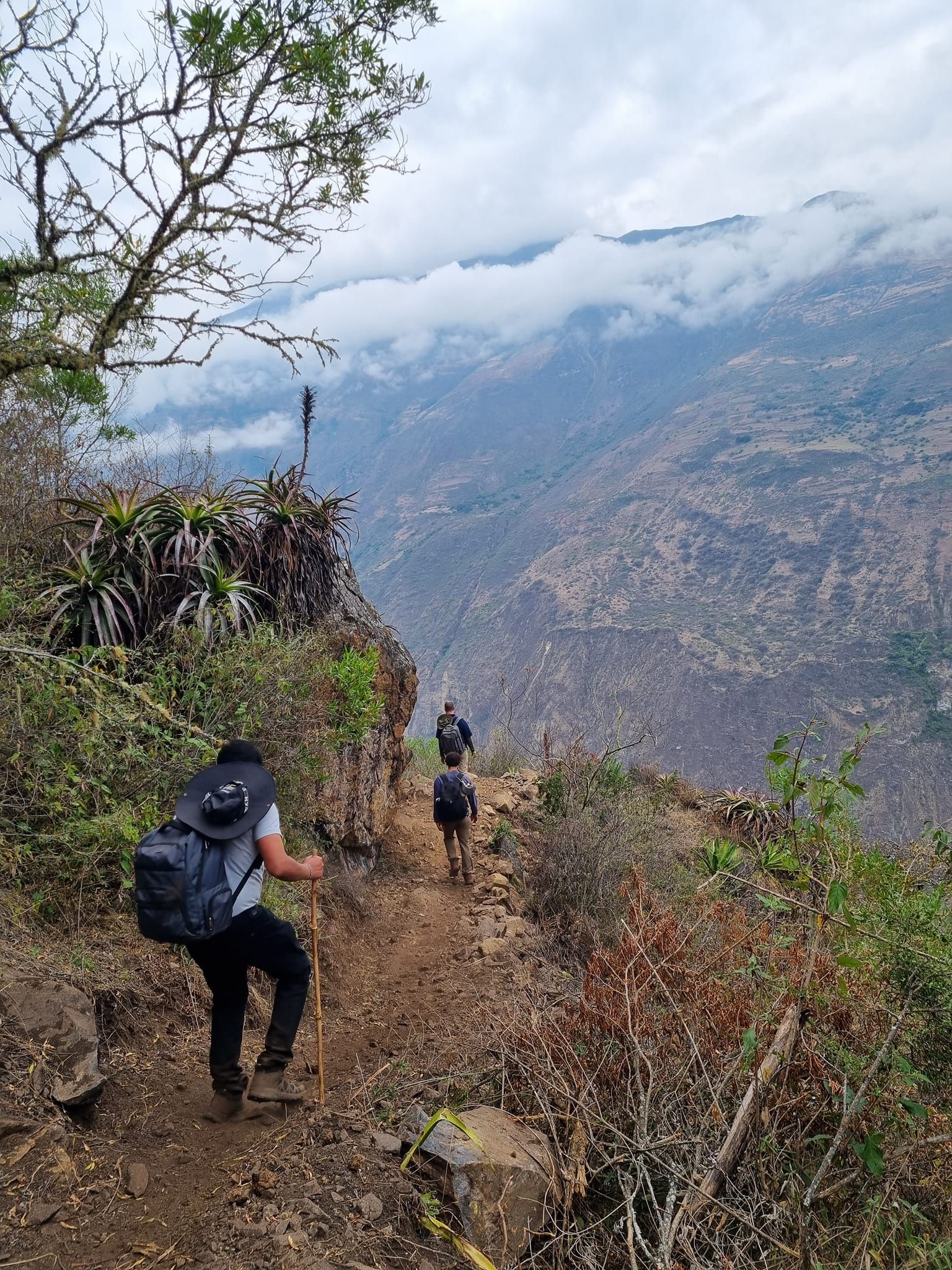 Luego de disfrutar de las fantásticas vistas de las montañas, iniciamos el regreso a Cusco. Primero es un descenso de 3 horas de regreso al Cañón Apurimac, luego otras 2 horas cuesta arriba hasta nuestro campamento en Chiquiska (1875 m / 6151 pies).